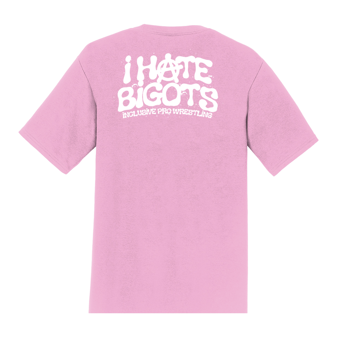 Back | Stylized “I Hate Bigots” and “Inclusive Pro Wrestling”